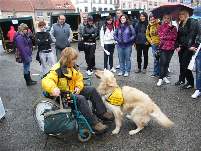 Byly tam obsazeny stánky: komunitní plánování Hustopeče, Charita Břeclav, Ranná péče Brno, Spolek neslyšících Břeclav, Remedia Břeclav, Policie ČR,TyfloCentrum Břeclav, Helppes Praha, Betlém Klobouky, Penzion Hustopeče a další organizace. Naše organizace tam také měla svůj stánek, kde prezentovala svou činnost.Také v našem stánku jsme poskytovali informace - letáčky o lázních Lednice. Paní Rybářová se postarala o výzdobu a také prodej aranžovaných květin nezvyklým způsobem do ozdobné dýně. Iva Štěpánková zase nakreslila na nástěnku osvěžující květy. Také doplnila aranžmá z květin, také velmi vkusnou. Paní Haluzová zase přivezla vzorky chryzantén. Paní Kaňová Marie doplnila paličkované obrázky, velmi hezké. Také paní Staňková Zdeňka ze Strachotína zapůjčila vzorky pletených košíků z papíru, které byly k nerozeznání od proutí. Stánky navštívili hlavně děti z obou základních škol i z Gymnazia. Podle našeho názoru tato akce splnila požadavek - seznámení veřejnosti a hlavně mládeže s problémy, se kterými se zdravotně postižení lidé potýkají. Zúčastněné organizace nabízeli pomoc, jak s těmi problémy se dá žít.