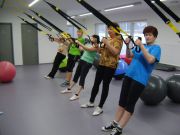Pokračujeme ve cvičení ve fitku Marka Svobody, které je nově zřízeno. Naše skupina byla úplně první, která v těchto prostorách cvičila. Opět pod pozorným dohledem zkušené a velmi trpělivé trenérky paní Žižkové. Nejdříve zahřívací kolo - cvičení na balónech, pak cvičení na strojích.