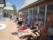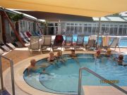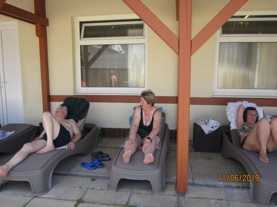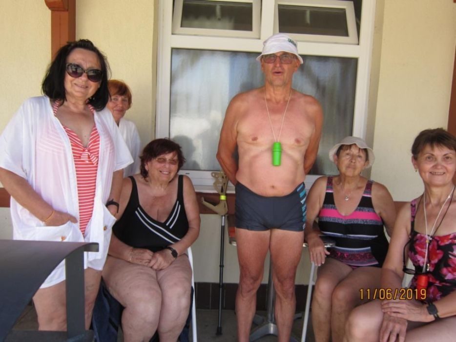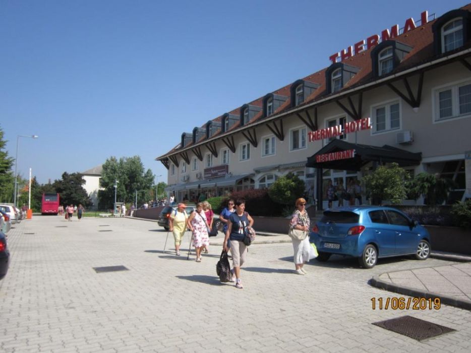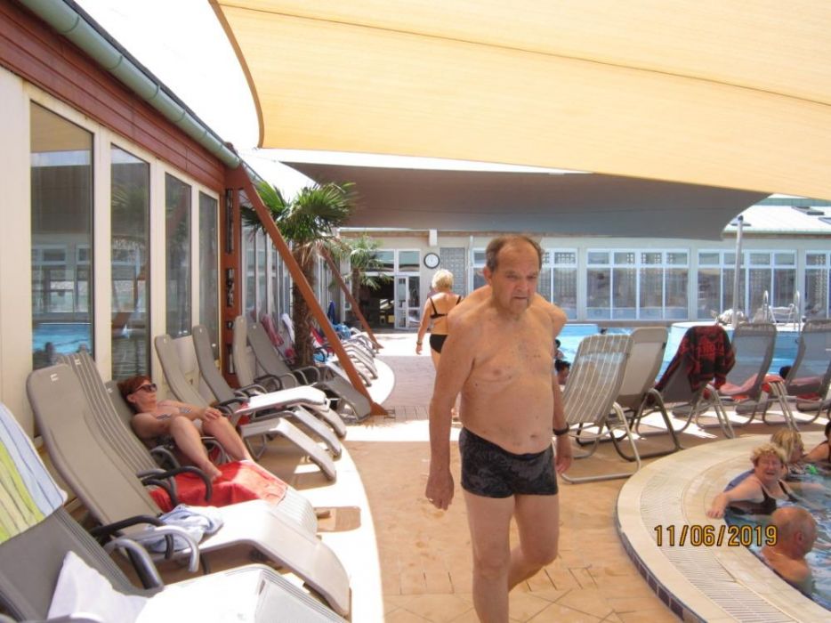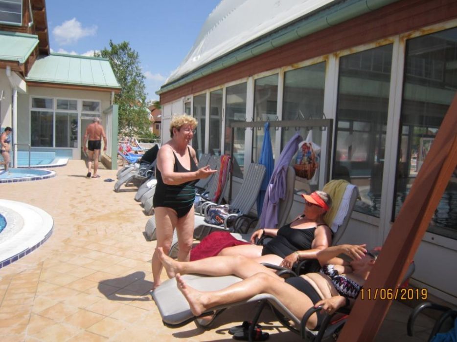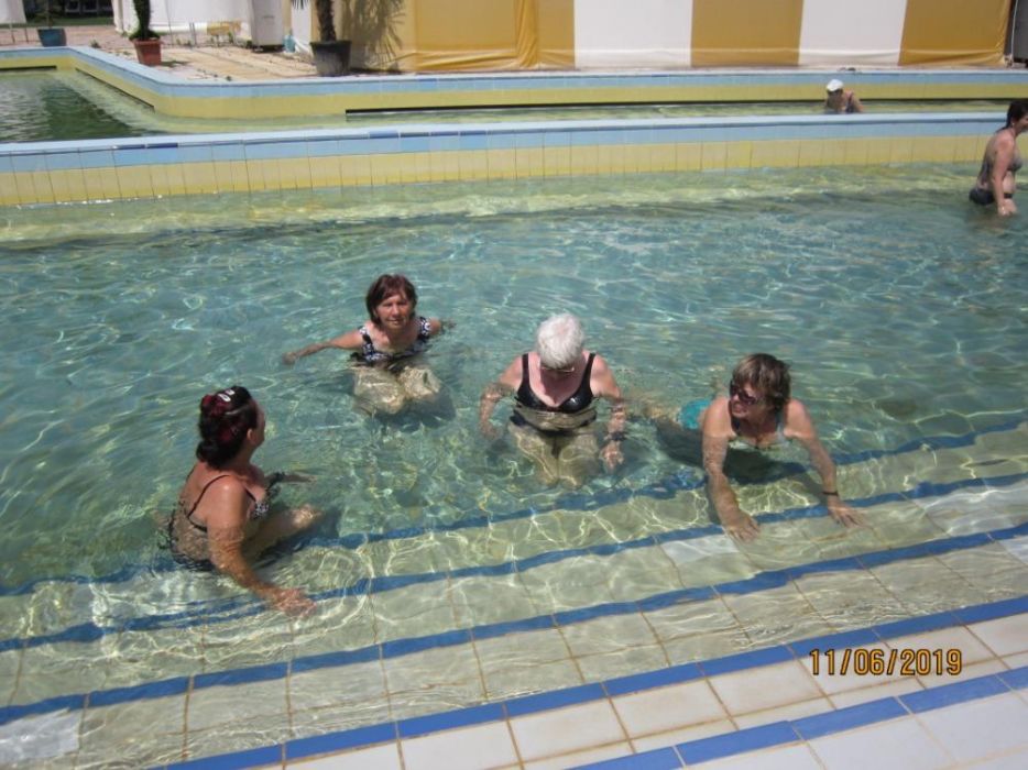 Dne 11. 6. 2019 jsme navštívili termální lázně Mošoň v Maďarsku. Lázně se nacházejí uprostřed zeleně, v blízkosti centra města. Léčivá voda se doporučuje v případě choroby kloubů a páteře. Také se doporučuje v případě dýchacích cest formou inhalace. Jsou zde bazény s různě teplou vodou od 28 o C - 38 o C, wellnes bazén, dva plavecké bazény. V některém bazénu je perličková lavice, masážní prvky chodidel, různé vodní atrakce - chrliče, hříbek. Při vstupu do lázní zaujme květinová výsadba, různé zdobné prvky - želvy, palmy. Užívali jsme si teplé vody na rozcvičení našich bolavých kloubů. Nechybělo ani posezení u kávičky.