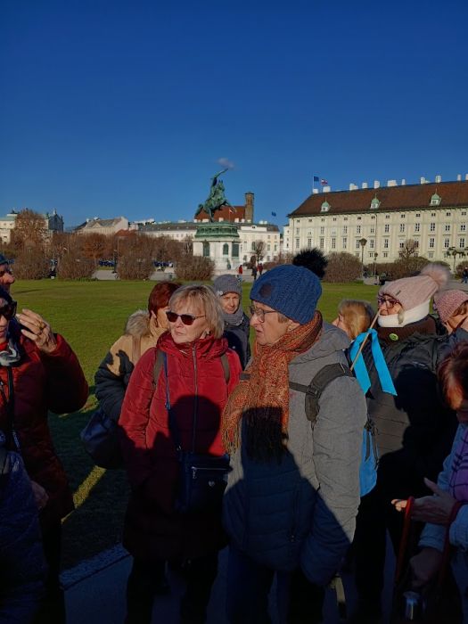 Poslední zájezd roku 2024 byl 5. 12. 2024 do nazdobené „Vánoční Vídně“. Měli jsme výbornou paní Bukovskou, průvodkyni, která hned v autobuse rozdala kartičky se svým telefonem. Na druhé straně byl plánek, která místa navštívíme. Autobusem jsme měli krátkou projížďku, paní Bukovská upozornila na některé budovy – muzeum Albertina a jiné. Vystoupili jsme u sochy Marie Terezie, měla v ruce pragmatické sankce „nástupnická práva“ zajištěna. Přešli jsme k Hofburgu, od roku 1945 sídlo prezidenta, také Rakouské národní Knihovny a několik muzeí. Odtud jsme se vrátili, prošli parkem ke stánkům s vánoční tématikou a občerstvení. Vůně punče se linula všude kolem. Prošli jsme k radnici, kde je stejná nabídka. Pro malé děti tam byl kouzelný patrový kolotoč, kluziště s půjčovnou bruslí. Cestou k radnici jsme viděli parlament, sídlo vlády, také muzeum Sisi, kostel sv. Michala. Prošli jsme dvou ulic s luxusním zbožím, kde je úžasná vánoční výzdoba v podobě velkých světelných zvonů s andělskými křídly, další nádherné ozdoby. Na ulicích byla spousta koňských spřežení s kočáry pro turisty. Poslední návštěva Štefans domu – katedrála s nádhernou výzdobou. A pak už k čekajícímu autobusu na nábřeží a domů. Paní Bukovská měla velké znalosti, které se snažila nám předat. U Štefanské katedrály se nám ztratili tři účastníci. Je potřeba vždy poslouchat. Paní Bukovská měla připravený bohatý program, ale vzhledem k tomu, že většina z nás má problém s chůzí, jsme pomalejší, tak jsme všechno nezvládli. Paní průvodkyně byla milá, hodně o Vídni věděla