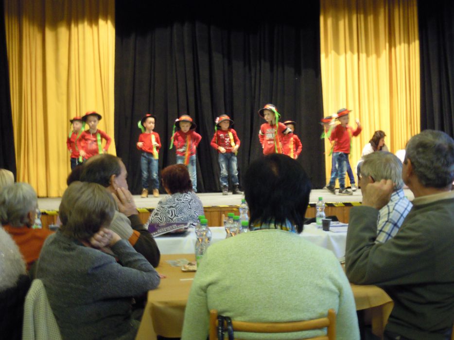 Po zahájení a přivítání hostů, vystoupily děti z mateřské školy Pastelka, kde vystoupily s pásmem "vodníčci, myšky, zatančily mazurku". Velmi pěkné, úsměvné vystoupení, které do tváří našich členů přineslo úsměv a radost.