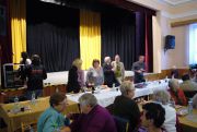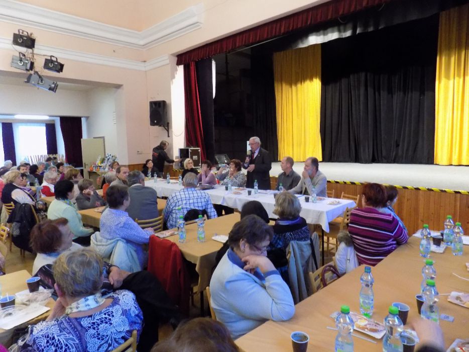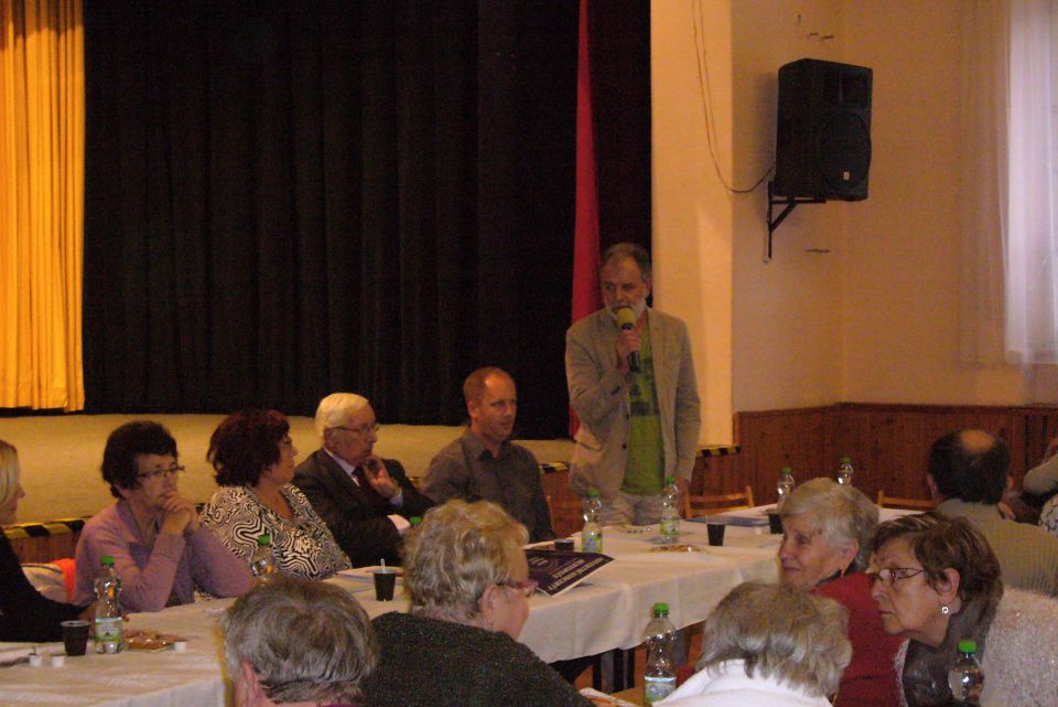 Ing. Hajda, senátor, se rozhovořil o připravovaném vinařském zákoně. Následoval místostarosta Města Hustopeče p. Švásta, který pozdravil přítomné členy, pochválil naši organizaci za činnost. Pan Laz, vedoucí sociálního odboru se rozhovořil o tématu "senior taxi", také požádal přítomné o anonymní vyplnění krátkého dotazníku vztahujícího se k tomuto tématu. Ocenil spolupráci s naší organizací. Za okresní výbor STP pozdravila přítomné místopředsedkyně p. Petrlová.
