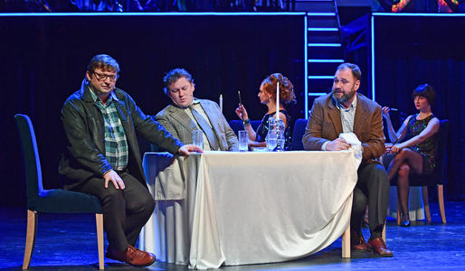 Herecké podání fasádníka Prouzy- hraje Michal Istenik (ve filmu Vlastimil Brodský) – bylo skvělé, přidával si vlastní repliky, s kterými rozesmával stále publikum, někdy i sebe a spoluherce. Do trojice fasádníků ještě jsou Petrtýl, hraje Jakub Uličník (ve filmu Jan Libíček), třetí fasádník je Skopec – hraje Petr Halberstadt (ve filmu Jiří Sovák. Trojice dam tvoří Božka hraje Markéta Sedláčková (ve filmu Jiřina Bohdalová), Marcela – hraje Pavla Vitázková (ve filmu Jiřina Jirásková), Zuzana – hraje Andrea Zelová (ve filmu Iva Janžurová).